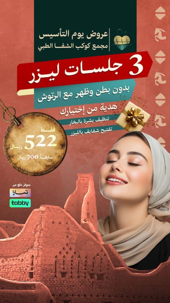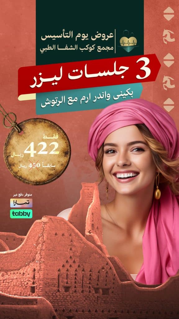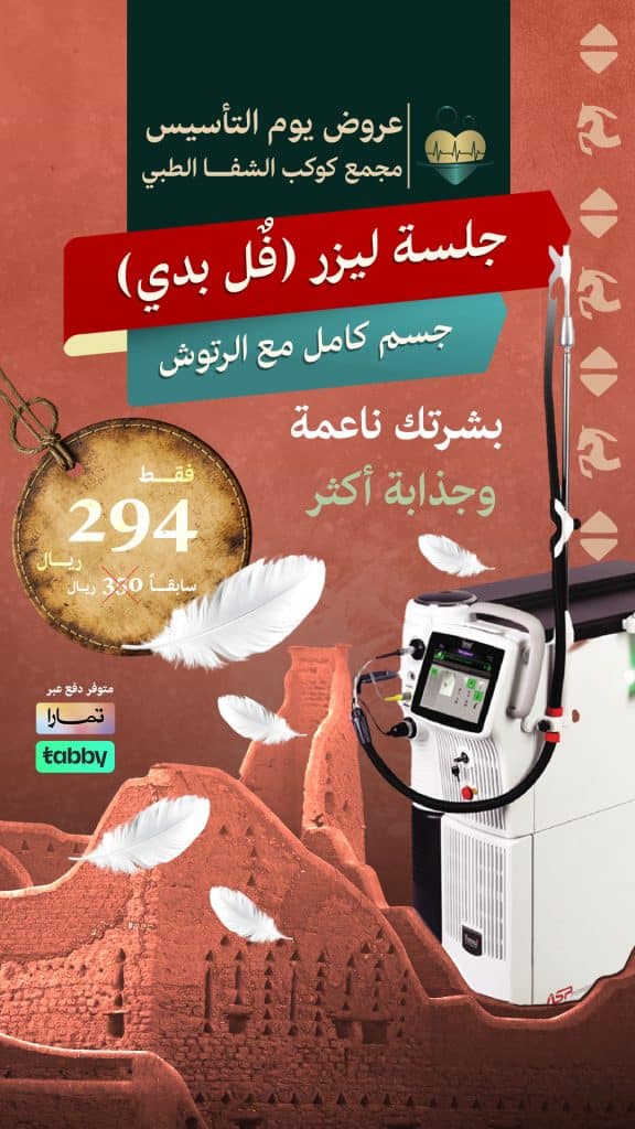 عروض يوم التأسيس (الليزر والبشرة بالطائف لإزالة الشعر) كشف مجاني لدى أخصائية الجلدية قبل الجلسة. مواعيد دقيقة وإنتظار أقل. أمان على بشرتك وتقنيين محترفين. أحدث الأجهزة المتطورة بالطائف. الجهاز الأفضل جنتل برو ماكس. وحصرياً جهاز الفوتونا بالتقنية المتطورة. حجز موعد العروض إحجزي موعدك بسهولة فقط تواصلي معنا لتحصلي على العرض الحجز على واتساب أو سجلي بياناتك ونتواصل معك سجلي بيانتك وسيتواصل فريق خدمة العملاء معك في أسرع وقت Please enable JavaScript in your browser to complete this form.Please enable JavaScript in your browser to complete this form.الإسم؟ * أكثر (إختياري الجوال رقم الجوال ؟ *البريد الإلكتروني؟ (إختياري لخصومات أكثر !! )إرسال الطلب